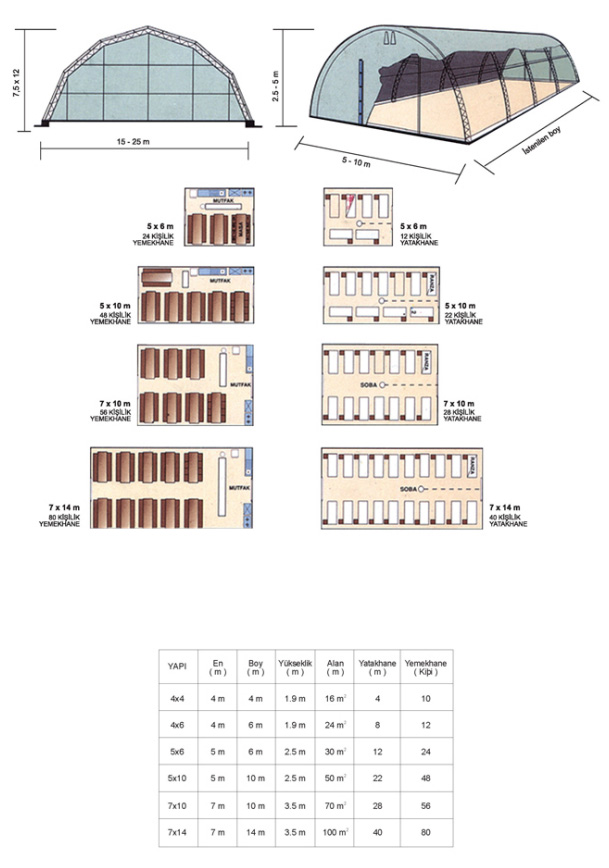 Yatakhane veya yemekhane amacıyla kullanılanım için, plan kesit yerleşimden kapasitelerine göre şantiye çadırını seçebilir ve hemen sipariş verebilirsiniz. Talep Formu . Şantiye Çadırı ve Donanımları uygun fiyatla müşterilerimize sunulmaktadır.